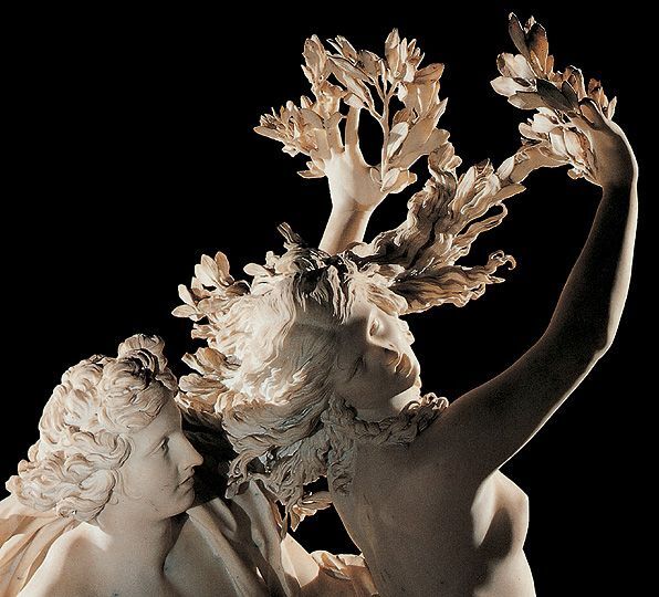 Cette œuvre s'inspire de l'une des métamorphose d'Ovide : Apollon et Daphné. Le Bernin développe toute la narration de ce mythe dans le visage des deux personnages. Daphné est ainsi représentée avec un visage apeuré et angoissé, signe de sa détresse, tandis qu'Apollon est arbore une expression surprise et heureuse. Cette sculpture fait partie d'un ensemble de plusieurs œuvres commandées par Scipion Borghèse au Bernin pour orner la Villa Borghèse à Rome. Ces œuvres dits "groupes de Borghèse sont au nombre de 4 : Enée, Anchise et Ascagne (1619), L'Enlèvement de Proserpine (1621-1622), David (1623-1624), Apollon et Daphné (1622).