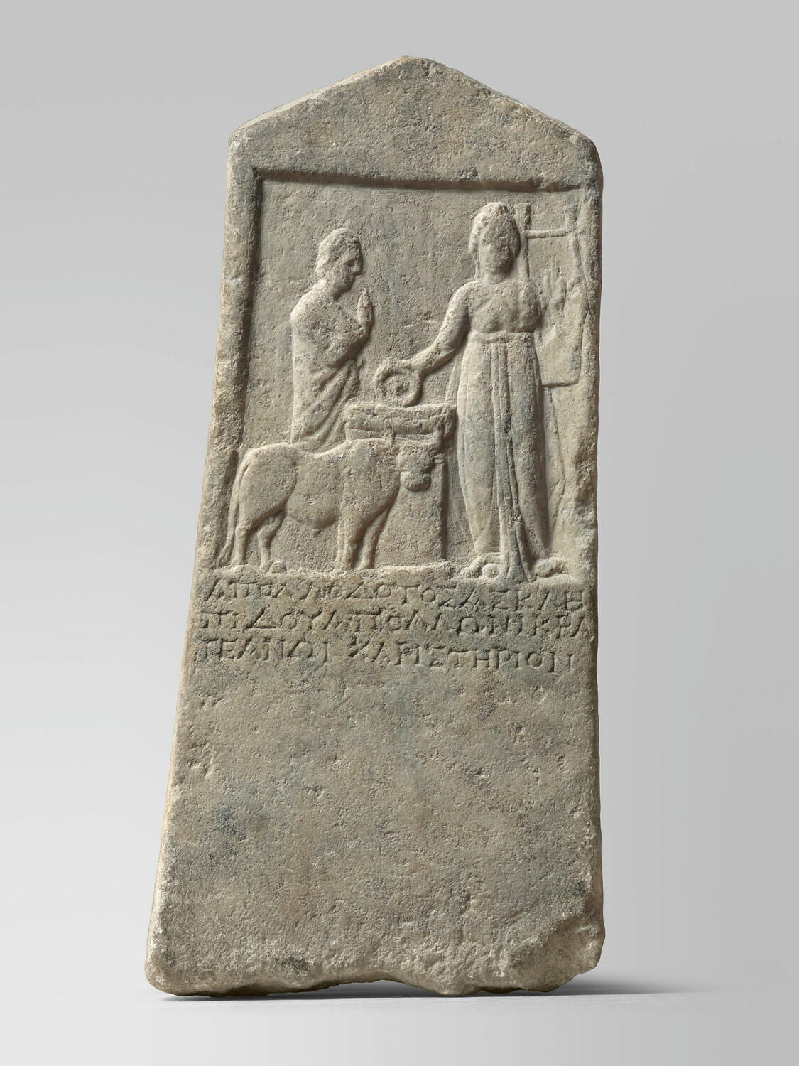 Relief à fronton avec une scène de culte, un adorant et Apollon.