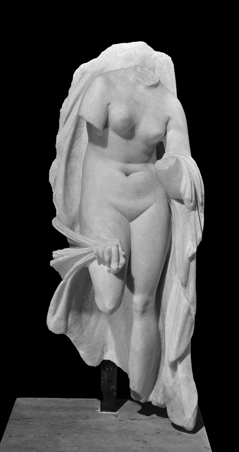Statuette d'Aphrodite nue avec un voile sur le dos.
