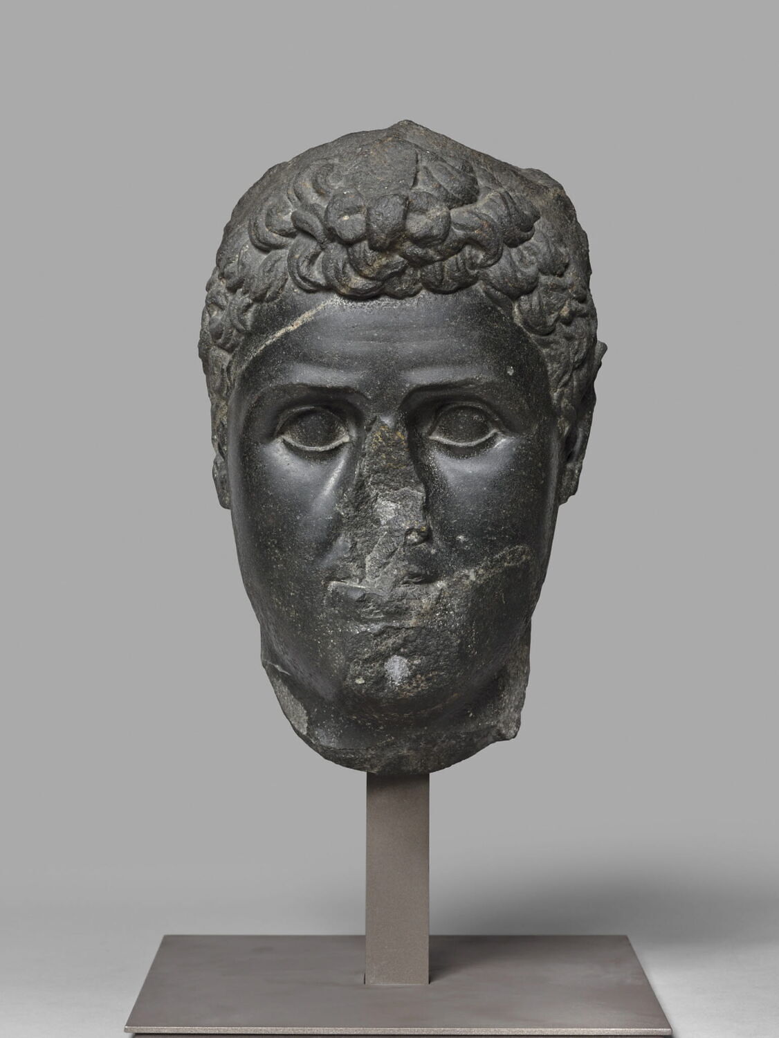 Tête de statue du roi Ptolémée X Alexandre avec un bandeau.