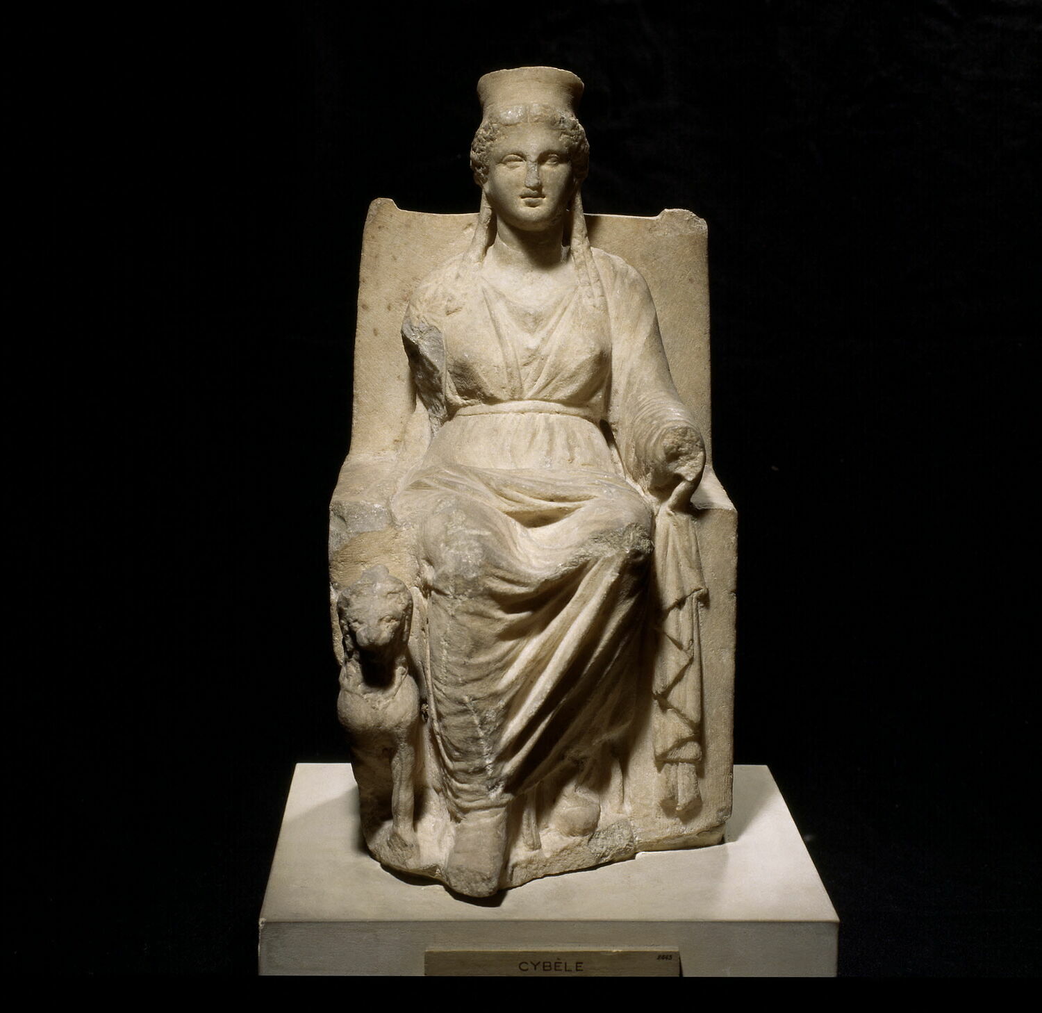 Statuette de Cybèle assise sur un trône flanqué d'un lion.