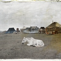 Stéphane Passet, “Un cheval couché devant un campement de tentes et de yourtes,” GPC_2025_G5, consulté le 23 avril 2026, https://pireh.univ-paris1.fr/patrimoine/2025-2026/GPC/G5/items/show/3.