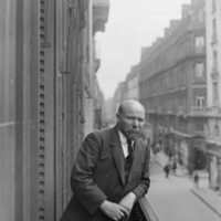 - Seule photographie où Albert Kahn accepte de prendre la pose, au balcon de sa banque rue Richelieu, Paris