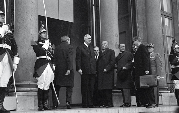 © Roger-Viollet, “Le chancelier allemand Konrad Adenauer arrivant en France,” GPC_2025_G6, consulté le 23 avril 2026, https://pireh.univ-paris1.fr/patrimoine/2025-2026/GPC/G6_1/items/show/44.